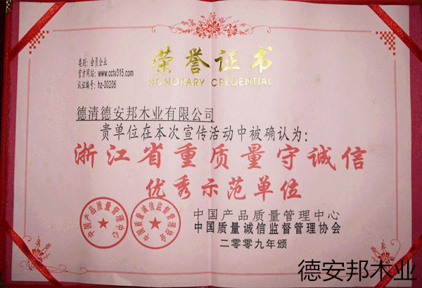 浙江省重質(zhì)量守誠(chéng)信優(yōu)秀示范單位